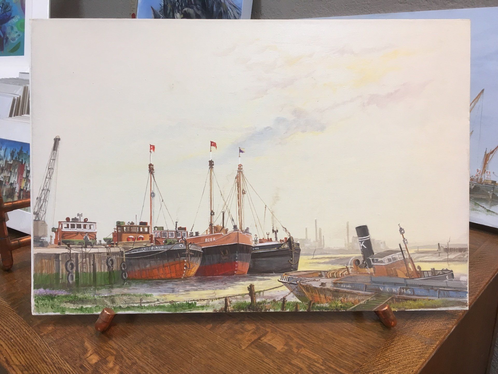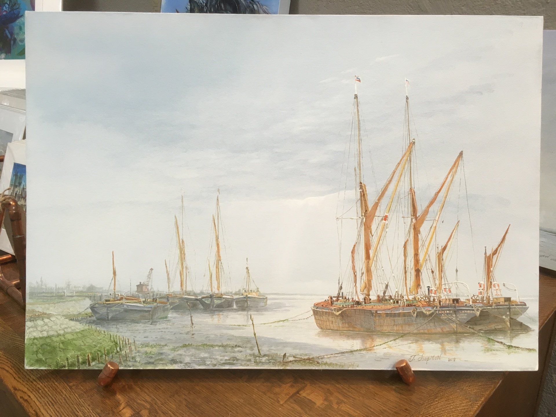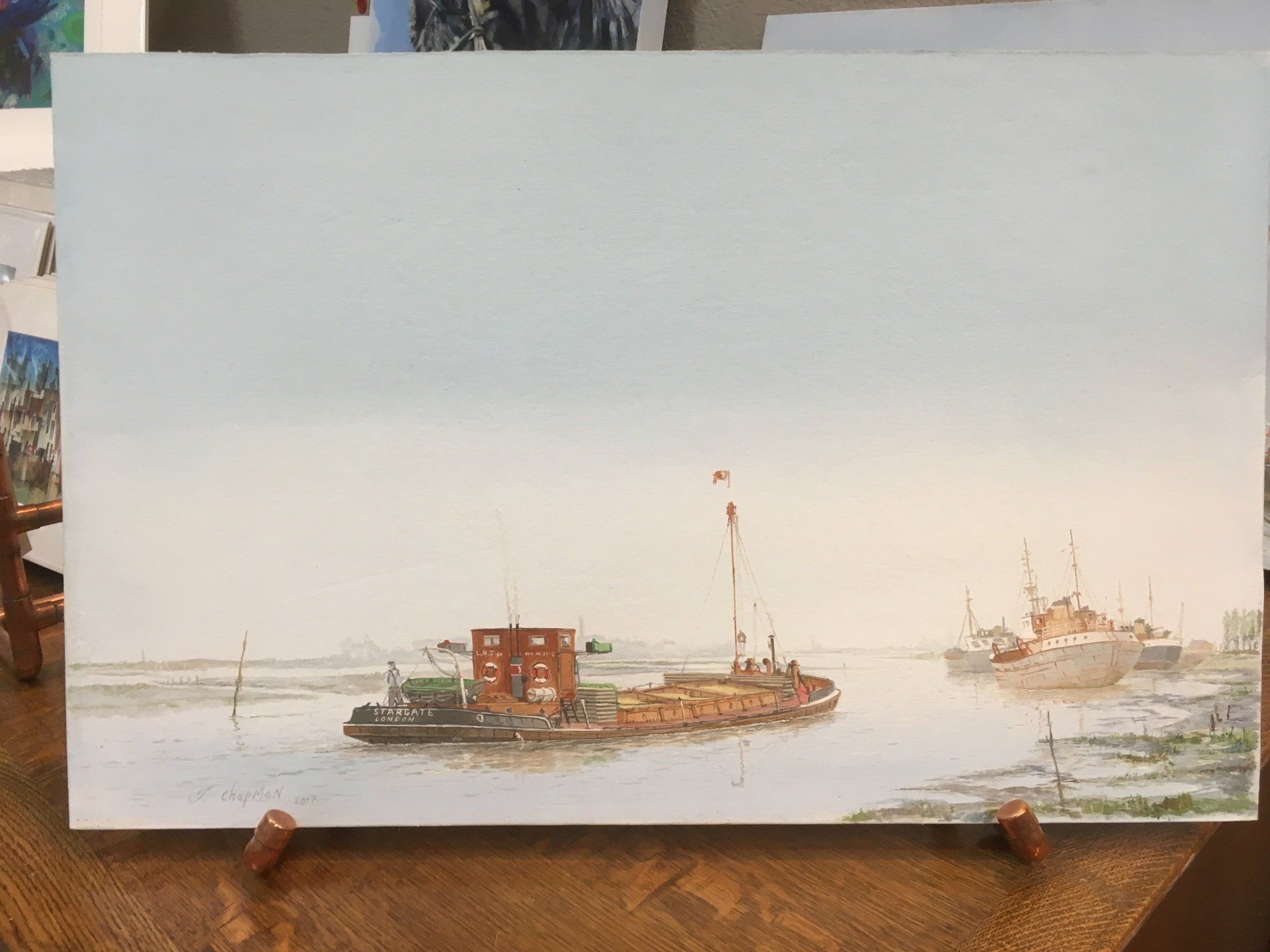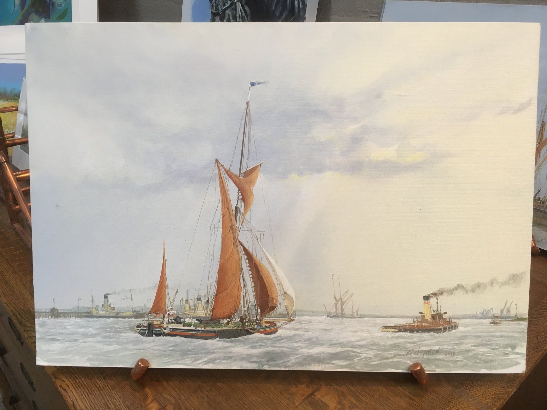John has spent his whole life on the water sailing barges, tugs & boats in the area between London Bridge to the Isle of Sheppey. John is a self taught local artist specialising in recording his detailed memories of the rivers and waterways around North Kent and the Thames river & estuary. His paintings range from the sailing river barges to admiralty ships, tugs & barges.