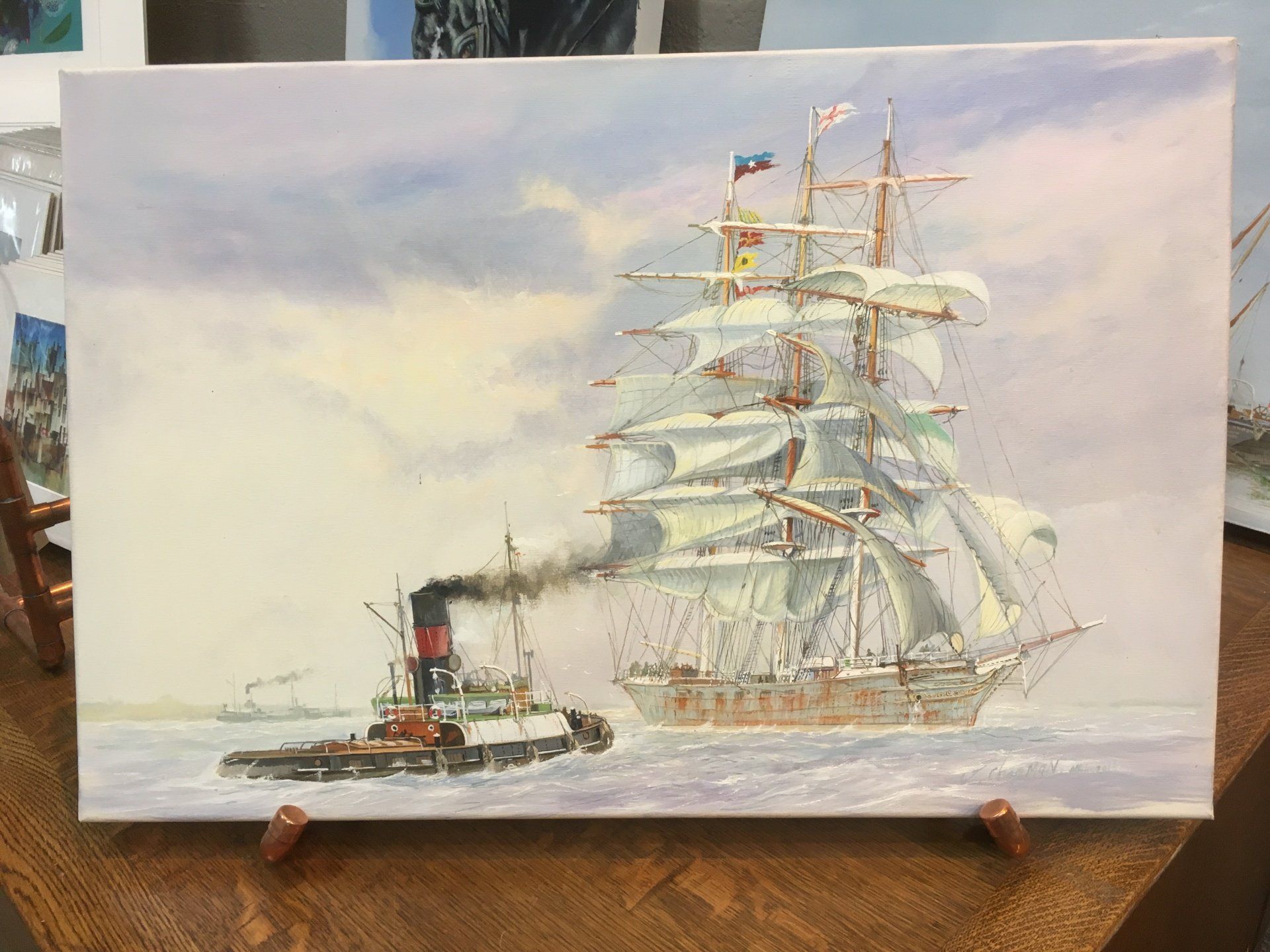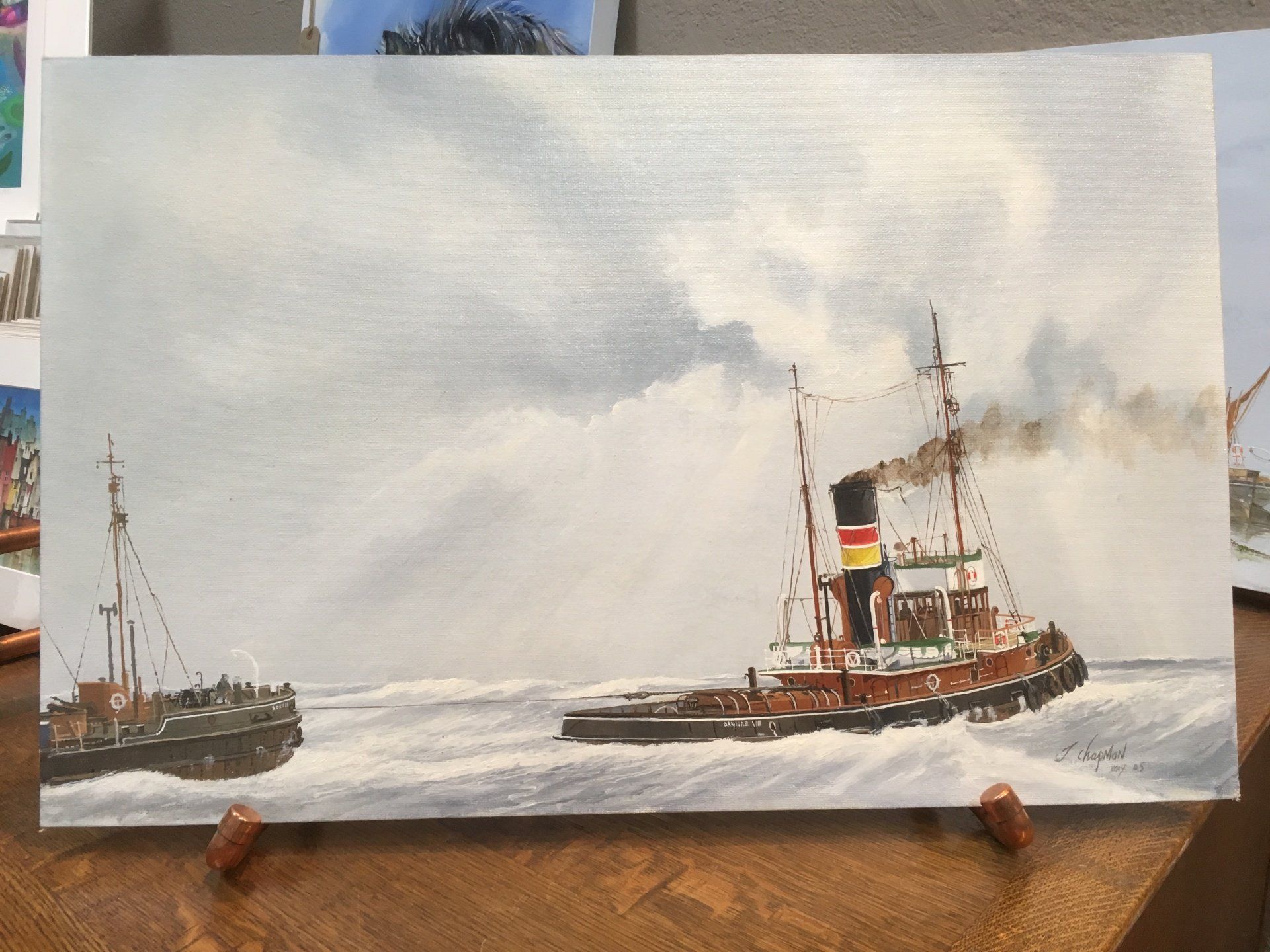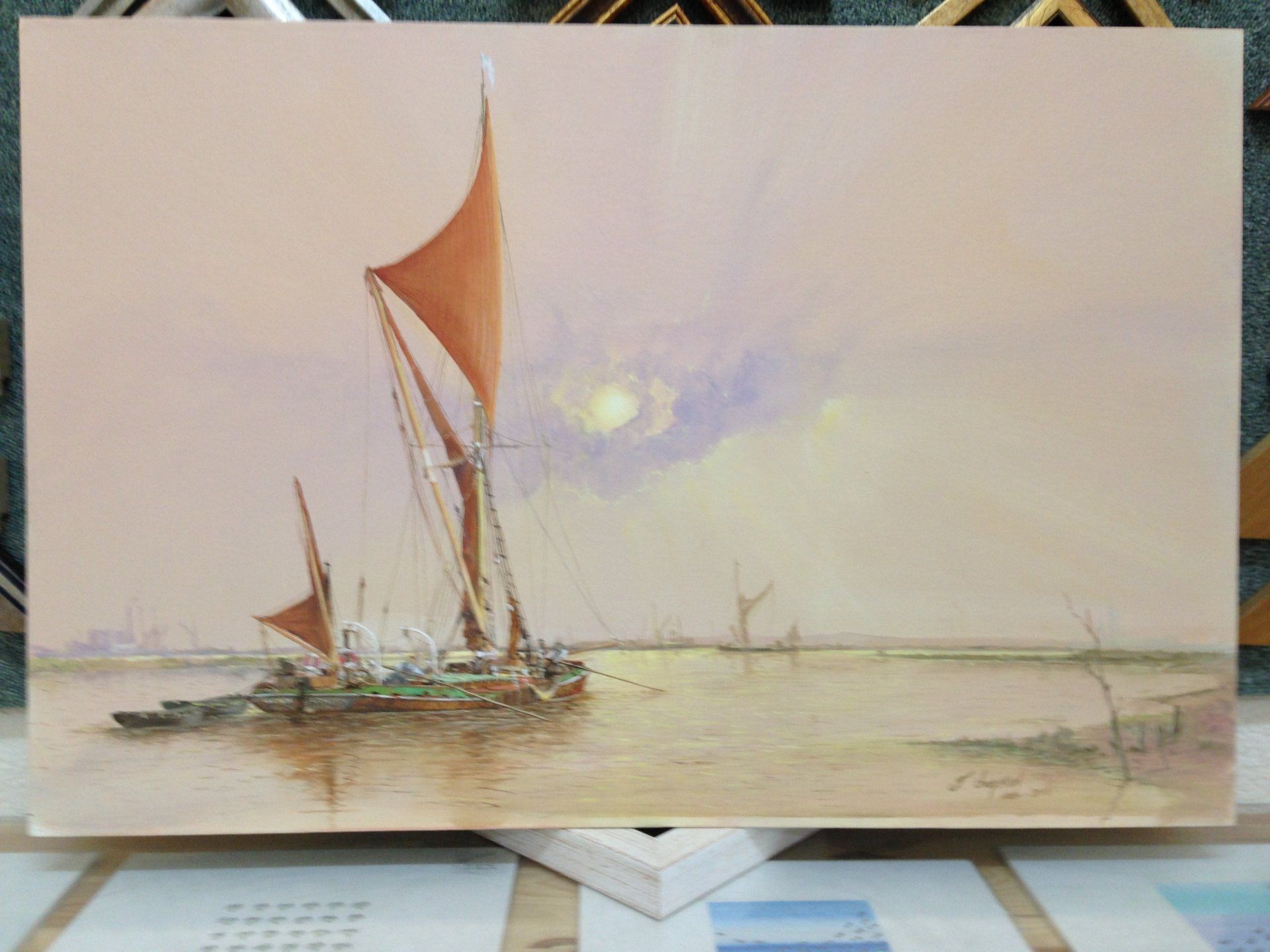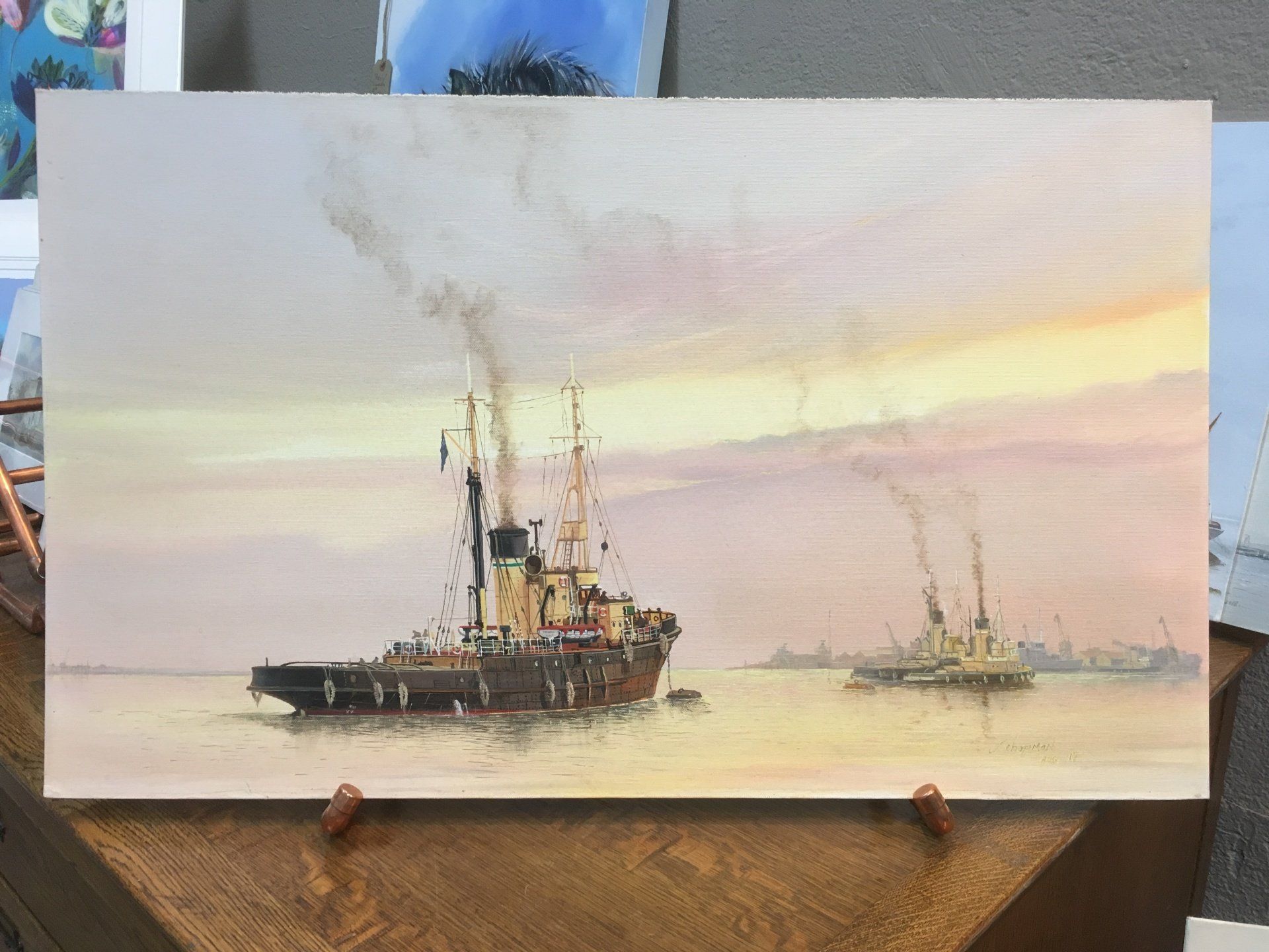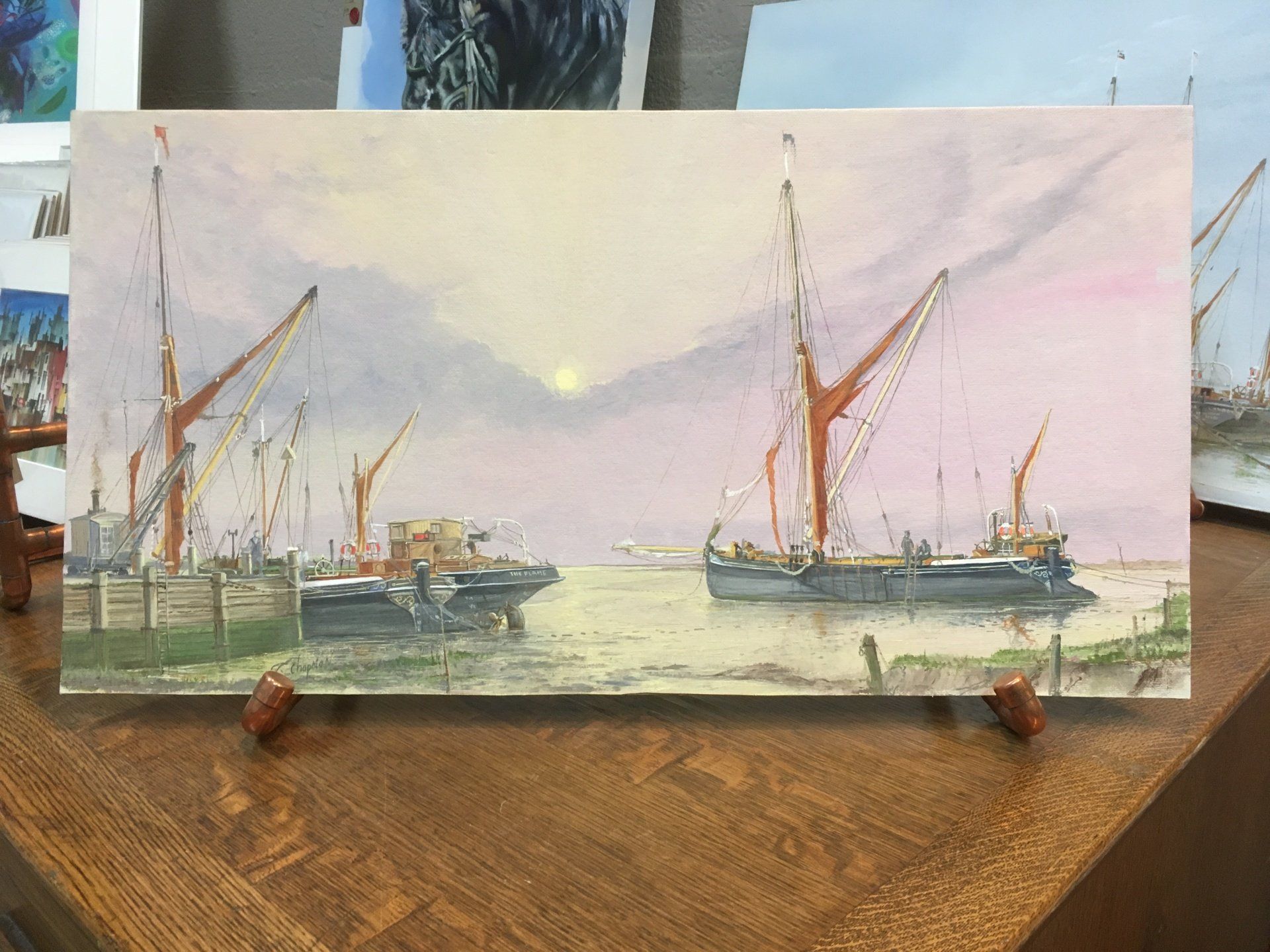 John has spent his whole life on the water sailing barges, tugs & boats in the area between London Bridge to the Isle of Sheppey. John is a self taught local artist specialising in recording his detailed memories of the rivers and waterways around North Kent and the Thames river & estuary. His paintings range from the sailing river barges to admiralty ships, tugs & barges.
